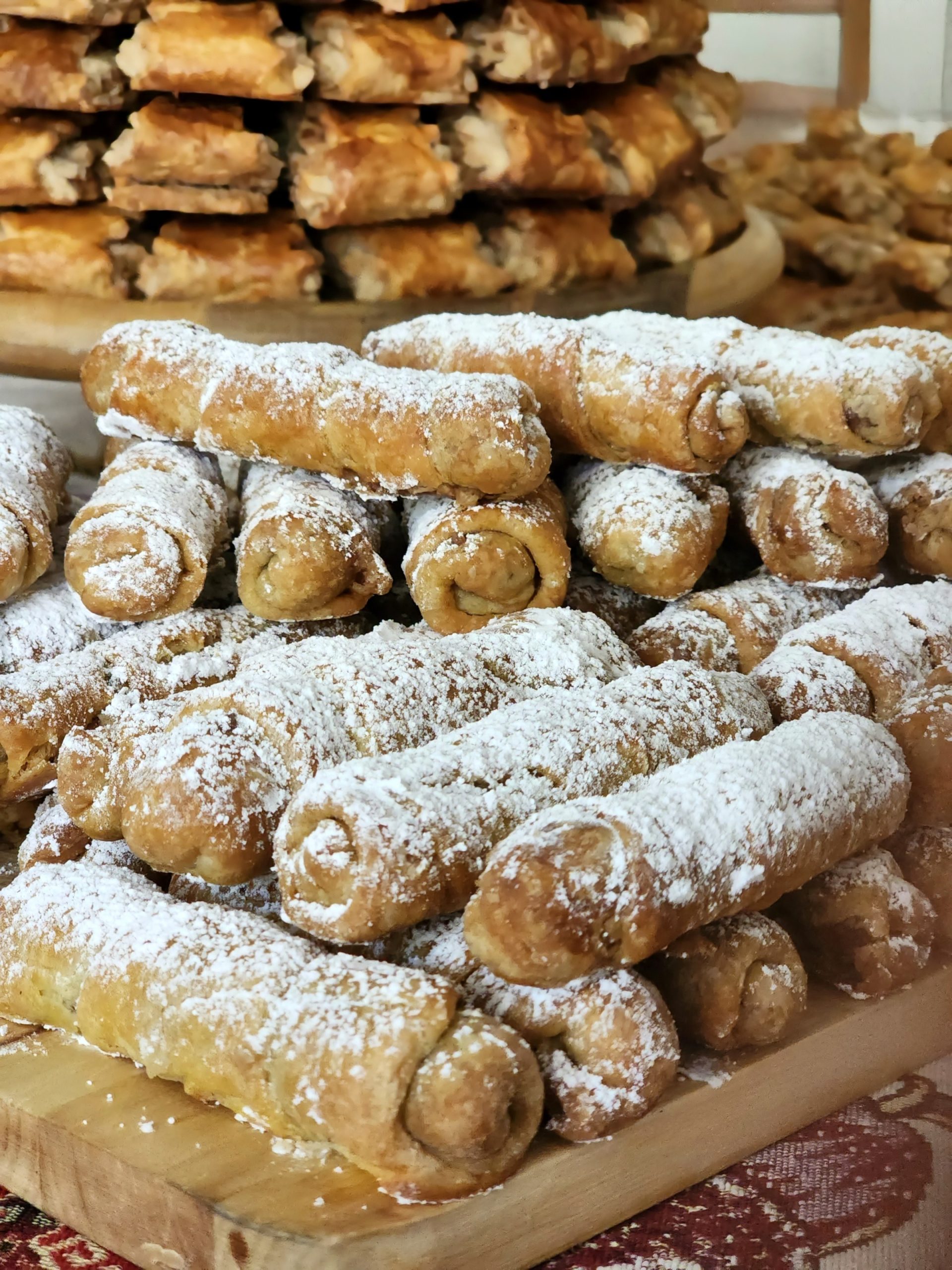 Walnut biscuits crafted from the same delectable dough as Gata but filled with finely walnuts with touch of sweetness. Add a sprinkle of optional icing sugar for a sweeter option. Tailor your experience to your liking and indulge in these delightful treats however you please.